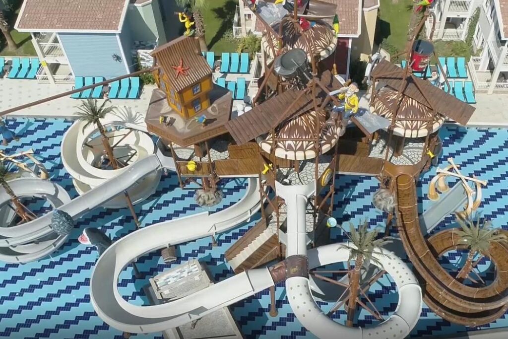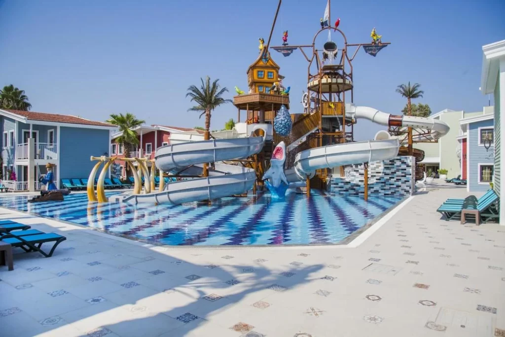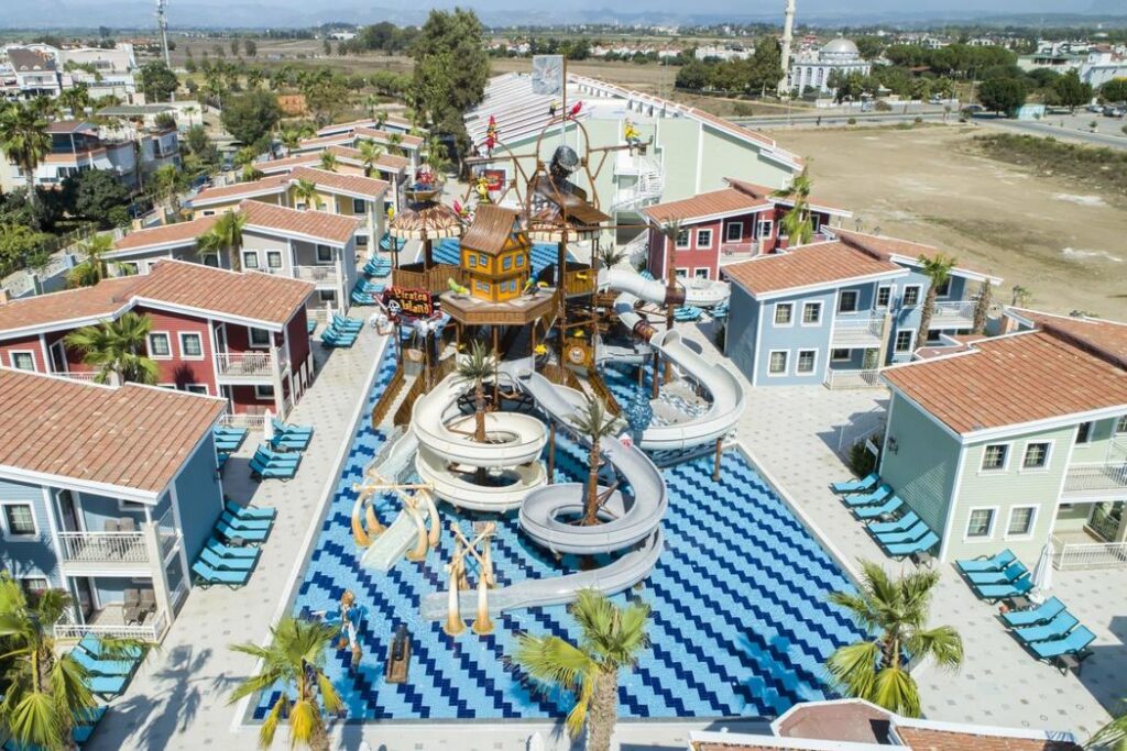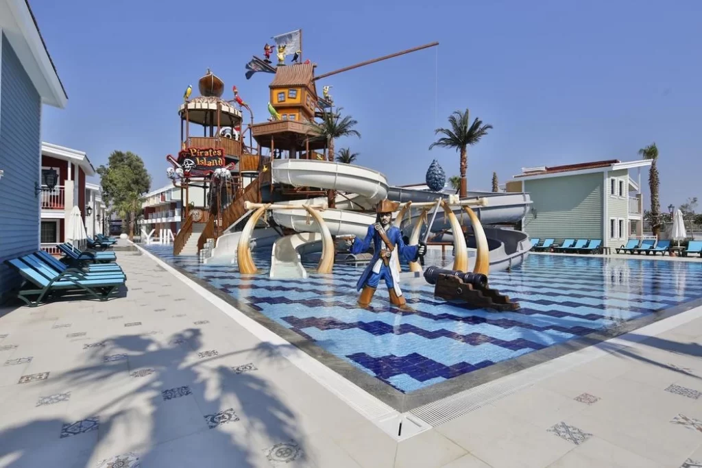 Belek, Boğazkent mevkiinde bulunan tesis, Antalya Havalimanı’na 40 km., Antalya şehir merkezine 50 km. mesafededir.10.082 m2 alana kurulu tesisin toplam 145 odası bulunuyor.Kendine ait özel sahiline 450m. mesafededir. 08:30-19.00 saatleri arasında ücretsiz servis aracı (shuttle) hizmeti vardır. Toplam 804 m² alana sahip aquapark havuzu ve ana havuzumuz mevcuttur. Aquapark Karayip Korsanları temalı olup, tüm zamanlara hitap eden 5 kanallı, tehlikesiz, 40 cm. suya inen, düşük level aquapark özelliklerine sahiptir. Çocuklarımız 4-12 yaş çocuk havuzu ve farklı özelliklerde 2 band, yetişkinler ve 12 + çocuklarımız için 3 band aquapark, mini kulüp, gençler için (13–16 yaş) junior kulüp (01.06-01.09),çocuk bahçesi ve oyun alanları mevcuttur. Akşamları çocuklar için mini disco ve yetişkinler için soft canlı müzik vardır.